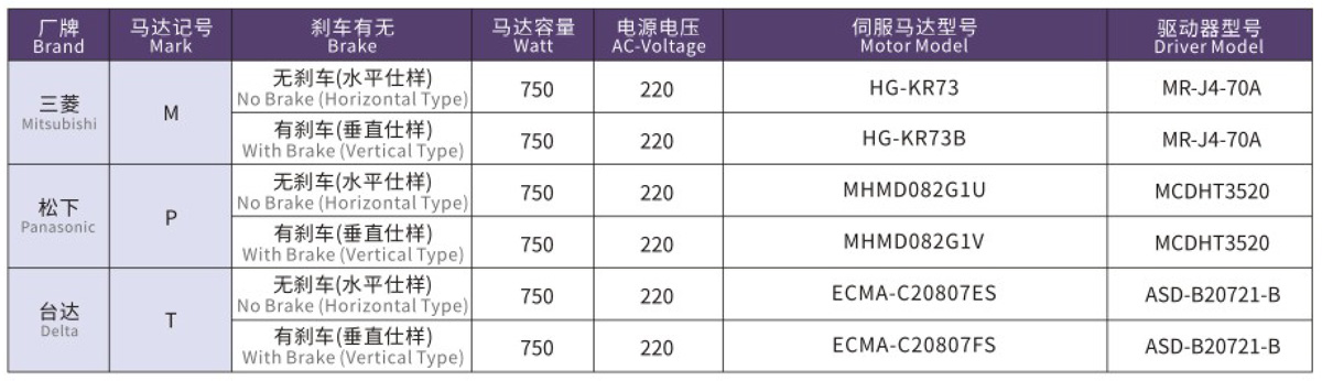 搭配伺服马达一览表