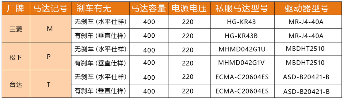 搭配伺服马达一览表