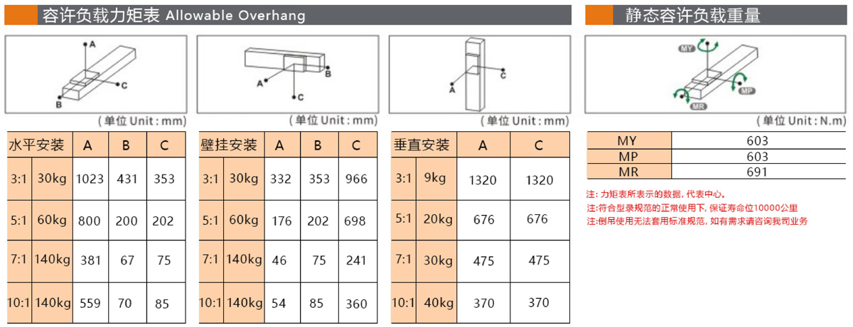 容许负载力距表